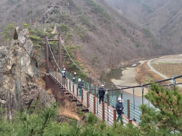 충북도는 충주시 종합감사 기간인 11월 24일 충주시 수주팔봉과 종댕이길에 설치한 출렁다리 2개와 문성휴양림의 집라인 1개 시설을 도민감사관 2명, 민간전문가 1명과 함께 안전점검을 실시했다.