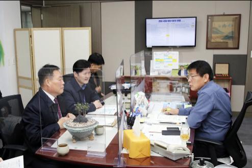 또한 남악과 오룡지구 신도시 주민의 숙원사업으로 추진 중인 남악신도시 체육시설 확충사업이 조속히 추진될 수 있도록 실시설계비 등 예산 반영을 건의하고 금년 12월 선정 예정인 해양수산부 공모사업인 어촌뉴딜 300사업과 수산자원 산란·서식장 조성사업에 대해서도 무안군이 선정될 수 있도록 협조를 요청하였다.