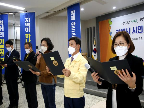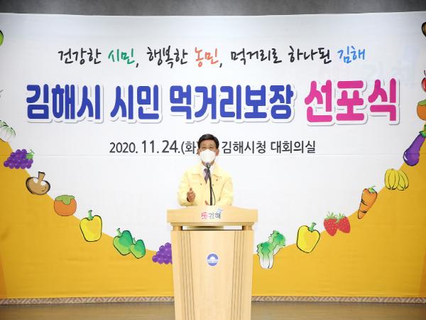 시민 먹거리 기본권 선포 = 시는 24일 시청 대회의실에서 지역 먹거리 선순환 체계를 목표로 추진 중인 ‘김해 푸드플랜’수립 연구용역의 최종보고와 함께 56만 김해시민 누구나 건강하고 안전한 먹거리를 보장받을 수 있는 ‘김해시민 먹거리보장 기본권’을 선포했다.