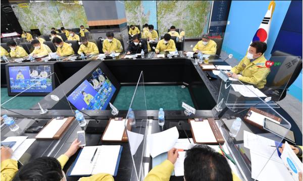 이날 점검회의는 코로나19 3차 유행이 본격화 되는 가운데 코로나19에 경각심을 불러일으키기 위해 중점관리시설(9종), 일반관리시설(14종), 교통시설, 종교시설 등을 관리하는 실·국장 및 23개 시·군 단체장들은 영상회의를 통해 마스크 착용 의무화, 환기·소독, 거리두기 등 핵심방역 수칙 준수 상황을 점검했다.