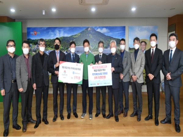 경북도는 24일 도지사 접견실에서 ㈜세영종합건설(회장 안영모), 경북 사회복지공동모금회(회장 전우헌)와 함께 독립유공자 후손 주거개선사업 후원금 및 지원금 전달식을 가졌다.