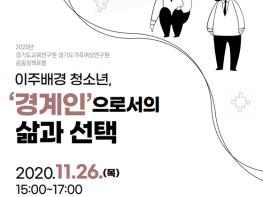 이어 박경태 성공회대 교수를 좌장으로 최영미 경기도가족연구원 연구위원이 ‘경기도 이주배경 청년 생활경험 및 사회정착 방안’을, 임선일 경기도교육연구원 연구위원이 ‘중도입국 청소년의 학교생활과 진로 지원 방안’에 대해 각각 발표한다.