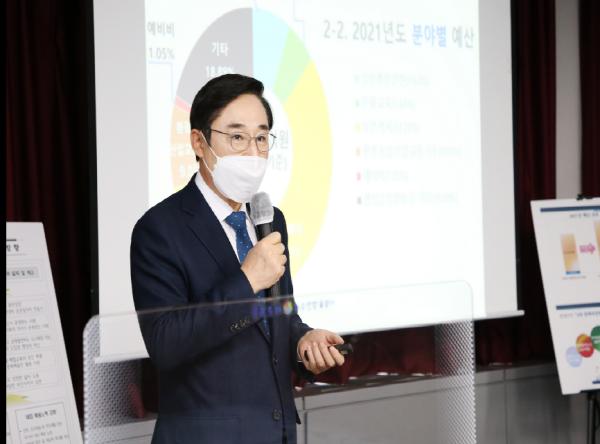 2021년 예산(안)은 특히 지역방역일자리 지원 및 방역용품 확보, 도봉사랑모바일상품권 발행 및 생활안정자금 융자 등 코로나19 대응을 위한 방역체계 구축과 지역경제 회복을 위해 100억 원을 편성했다.