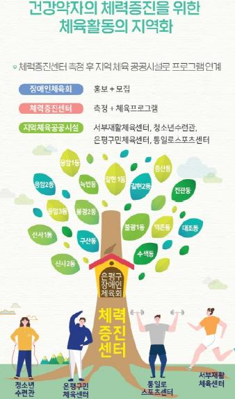 지난 1월부터 실시해온 체력증진센터는 건강 약자인 장애인이나 어르신을 주대상으로 상담부터 신체측정, 체육 프로그램, 사후 평가와 지역연계까지 원스톱시스템 으로 실시되고 있다. 이 프로그램을 이용할 수 있는 은평 관내의 장애인 인원은 2만1천여명(2020년 1월 기준)이다. 이에 16개 동별 장애인체육회의 전달체계가 확실하게 구축된다면 서울시 자치구에서는 처음으로 장애인의 적극적인 체육활동 참여 및 지속적인 건강관리에 이르기까지 그 폭이 확대될 전망이다.