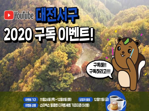 대전 서구는 25일부터 공식 유튜브 채널 ‘대전서구’와 서브 채널 ‘서구청 정부미’의 구독 이벤트를 각각 진행하고 추첨을 통해 경품을 제공한다.