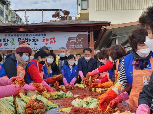 구미시 바르게살기운동구미시여성회에서는 11월 24일(화) 형곡1동 행정복지센터에서 50여명의 회원들이 참석한 가운데『사랑의 김장김치』나눔 행사를 가졌다.