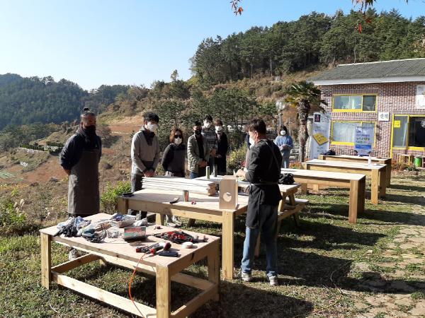 남면행정복지센터는 남해군 청년친화도시 사업의 일환인 ‘보물섬, 청년들의 더( )하다 플러스 프로그램’3강 목공예프로그램 강좌를 지난 21일 남해산책에서 개최했다.