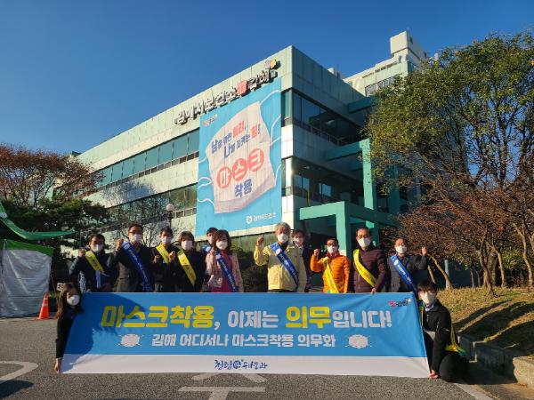 김해시는 24일 보건소에서 위생관련 단체장과 사무국장 등이 참석한 가운데 마스크착용 의무화 시행에 따른 실효성 확보를 위한 간담회와 홍보 캠페인을 실시하였다.