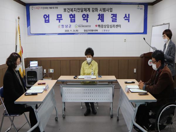 한정우 군수는 “장애인 심리상담 서비스 증진에 뜻을 함께한 관계기관에 감사드리며, 오늘 협약이 계기가 되어 우리 군의 보건복지전달체계가 한층 더 강화될 것이라 기대한다”고 전했다.