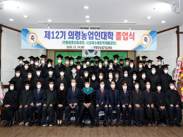 의령군은 지난 24일 농업기술센터 3층 농업교육장에서 의령농업의 변화와 혁신을 주도할 전문농업인력 양성을 위해 추진한 2020년도 제12기 의령농업인대학 졸업식을 가졌다고 밝혔다.