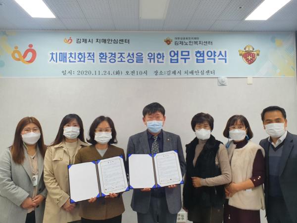 김제시보건소 치매안심센터에서는 지난 24일 대한성공회유지재단 김제노인복지센터와 ‘지역사회 치매 예방 및 치매 친화적 환경 조성을 위한 업무협약(mou)’을 체결했다