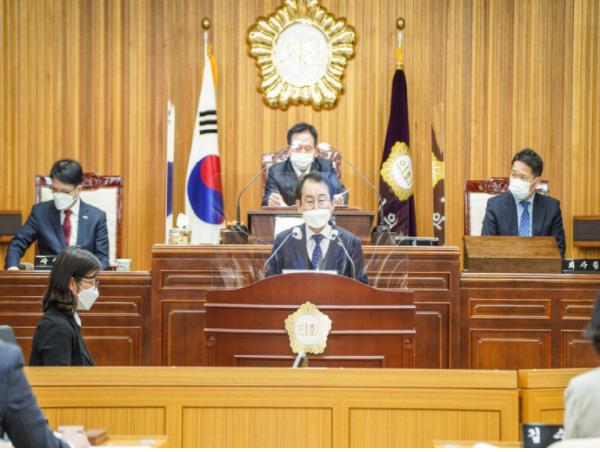 김종식 목포시장이 25일 열린 제362회 목포시의회 제2차 정례회에서 2021년도 예산안을 제출하며 올해 주요 성과와 내년도 시정 운영방향을 제시했다.