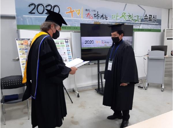구미시는 원평동 도시재생현장지원센터에서 2020년 11월 24일(화) 18시부터 『2020 구미시 원평동 ‘마을학교’』수료식을 개최하였다.