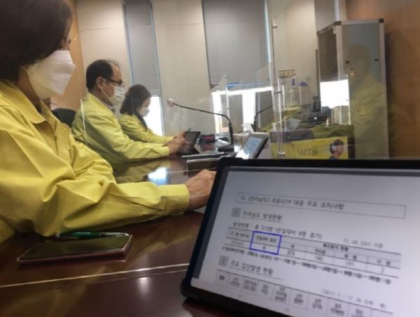 한편 완주군은 태블릿PC 회의 채택 외에 코로나19 극복을 위해 보건소 조직 대개편, 청사 출입문 전자출입명부 도입과 에어샤워기 설치, 전국 최초의 음압컨테이너 구축 운영, 호흡기 전담 클리닉 설치 운영, 선별진료소 야외화장실 설치 등 선제적 대응에 적극 나서 코로나 청정지역을 유지해오고 있다.