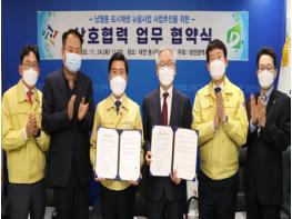 대전광역시 동구는 지난 24일 구청장 접견실에서 대전도시공사(사장 김재혁)와 낭월동 도시재생 뉴딜사업의 원활한 추진과 상호협력을 위한 업무협약을 체결했다.