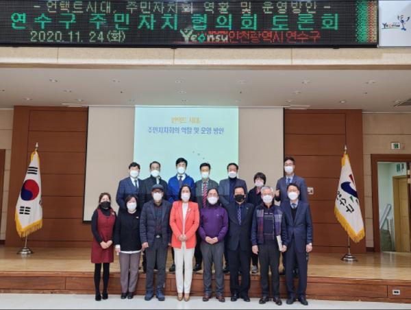 인천광역시 연수구는 24일 연수구청 3층 대회의실에서 연수구 주민자치협의회 주관으로 ‘언택트 시대, 주민자치회의 역할 및 운영방안’을 주제로 토론회를 개최했다.