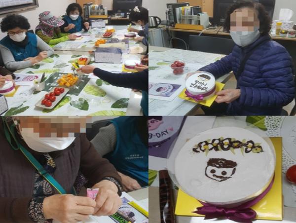 부곡3동 지사협 특화사업인 사계절 테마사업 중 정서치유 사업의 일환으로 추진된 이번 행사에서 관내 홀로어르신 5명은 생크림 케이크에 직접 자화상을 그리고 담소를 나누며 환한 미소를 보였다.