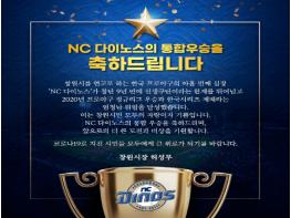 허 시장은 축하 메시지를 통해 “창원시를 연고로 하는 한국 프로야구의 아홉 번째 심장 NC 다이노스가 창단 9년 만에 신생구단이라는 한계를 뛰어넘고 2020년 프로야구 정규리그 우승과 한국시리즈 제패라는 엄청난 위업을 달성했으며, 이는 창원시민 모두의 자랑이자 기쁨이다”고 말했다.