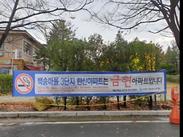이번에 금연아파트로 지정된 ‘백송마을 3단지 한신아파트’는 6개월 간 금연지도 점검 계도 및 홍보 기간을 거친 후 2021년 6월부터 지정된 금연구역에서 흡연 시 5만원의 과태료가 부과된다.