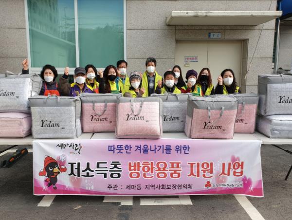 오산시 세마동지역사회보장협의체(공동위원장 김상용, 김강경)는 지난 24일 관내 어르신 등 어려운 이웃이 따뜻한 겨울을 보낼 수 있도록 겨울이불세트(100만원 상당)를 10가구에 전달했다.