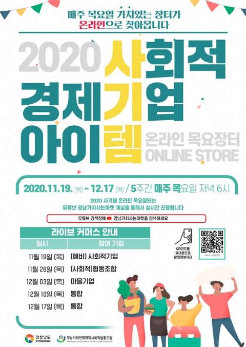 경상남도가 우리지역 사회적경제 활성화를 위한 판로개척을 위한 지원사업의 일환으로 온라인 목요장터를 개최한다.