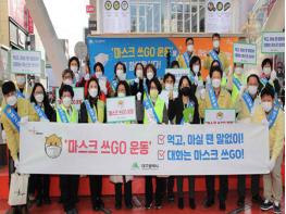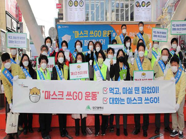 이에 대구시는 대구방역의 특징인 마스크 착용을 적극적으로 홍보해 겨울철 실내활동으로 인한 감염을 사전 예방하고자 25일 오후 2시 시민이 많이 모이는 동성로, 지하철 중앙로역, 주변 음식점, 상가를 중심으로 대구안전생활실천시민연합회(공동대표 김중진), 안전모니터봉사단 대구연합회(대표 김순회)와 함께 ‘마스크 쓰GO’ 캠페인을 전개했다.