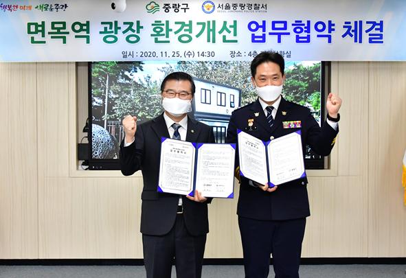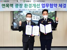 중랑구가 중랑구청 4층 기획상황실에서 25일 오후 2시 30분 중랑경찰서와 면목역 광장 환경개선을 위한 업무협약을 체결했다고 밝혔다.