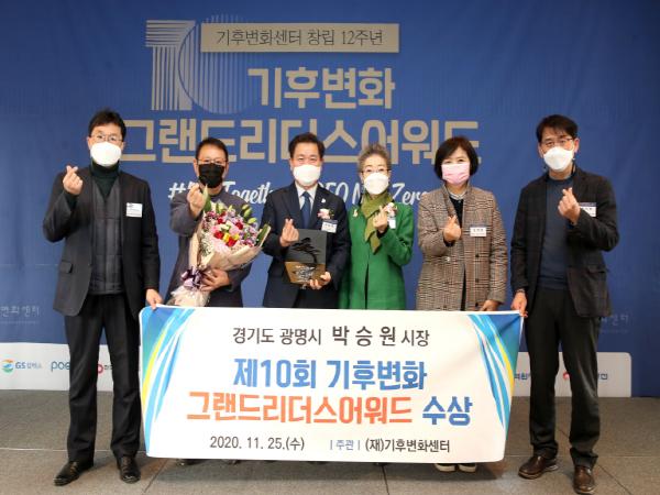 광명시는 25일 서울시 중구 플라자호텔에서 기후변화센터 주관으로 열린 ‘제10회 기후변화 그랜드리더스어워드’에서 지자체 부문 단독 수상의 영예를 차지했다.