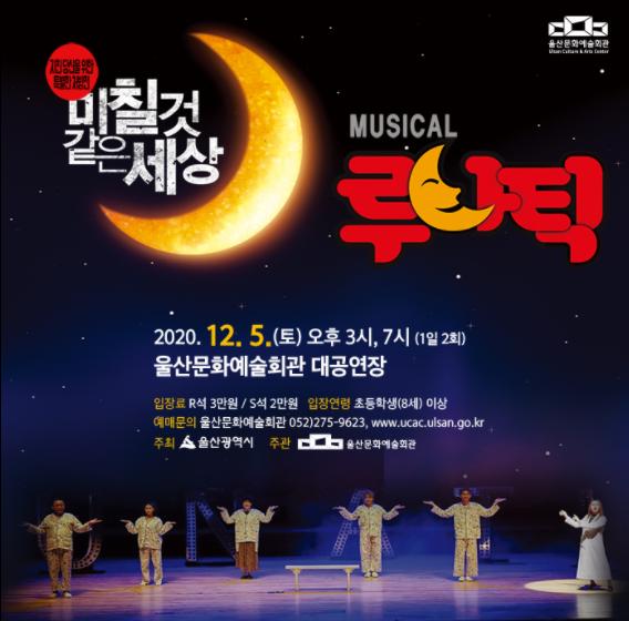 울산문화예술회관은 12월 5일(토) 오후 3시, 7시 2회에 걸쳐 문화예술회관 대공연장에서 힐링코미디 뮤지컬 ‘루나틱’ 공연을 선보인다.