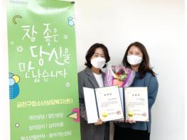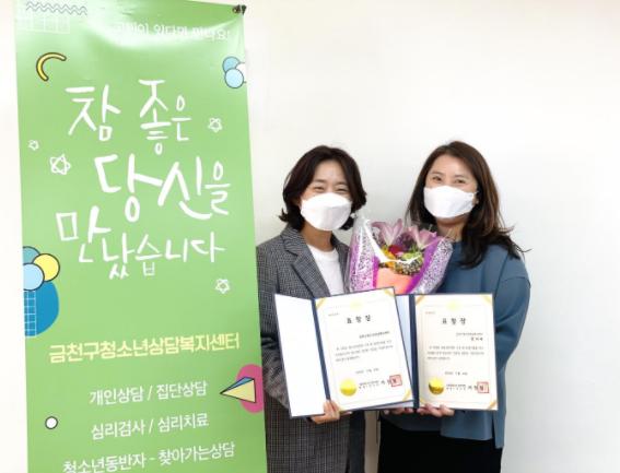 이날 금천센터는 서울시 25개 청소년상담복지센터 중 청소년안전망 운영 우수 기관으로 선정됨과 동시에 센터 직원도 청소년 사업 유공자로 서울특별시장 표창을 수상해 2관왕을 달성했다.