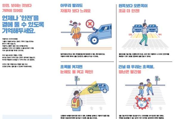 아울러, 어린이들에게 배포할 안전교육용 리플릿은 안전 정보들을 쉽고 빠르게 확인할 수 있도록 인포그래픽을 사용해 시각화했다. ▲안전공감지도 제작과정 ▲일상 속 위험요소 ▲동작구 어린이 안전 ▲동작구 안전특화사업 등의 내용을 담았다.