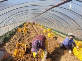 지황 조직배양묘는 「농업기술실용화재단」(품종:토강)에서 생산한 무병종순을 지난 8월 중순경에 정식하여 11월 중순에 수확한 후 종근용(지름 0.6~1.2㎝)을 정선하여 「농업기술실용화재단」에 전량 납품할 예정이다.