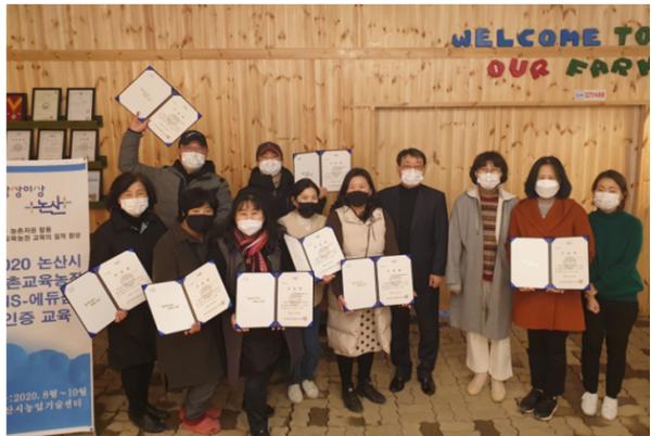 이번 교육은 2017년 논산시 농촌교육농장 인증농가 중 재인증 희망농가 및 신규인증 희망농가 10명을 대상으로, 마스크 착용, 발열체크 등 철저하게 방역수칙을 준수한 가운데 진행됐다.