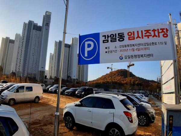 동 청사 앞 복합커뮤니티센터 건립 예정 부지를 자체 정비해 160면의 주차공간을 마련했다.