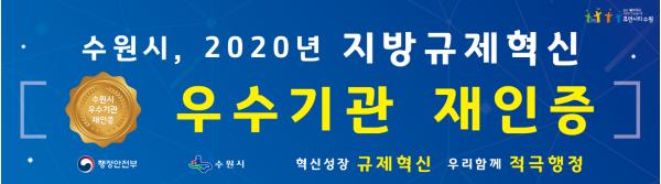 2018년 12월 행정안전부의 ‘지방규제혁신 우수기관’ 인증을 받은 수원시가 최근 재인증을 받았다.