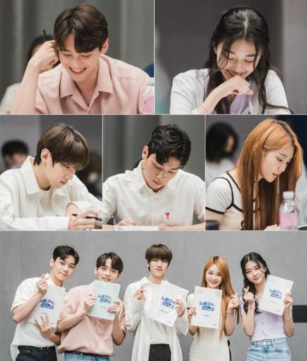 새 웹드라마 ‘노빠꾸 로맨스’의 윤산 이다연 재찬 강태우 나나 등 ‘발칙한 열여섯’ 5인방이 대본 리딩을 통해 처음으로 입을 맞추고 대박에너지를 발산했다.