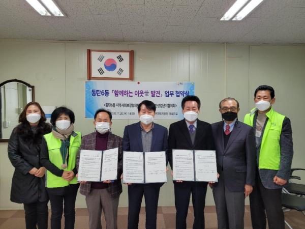 화성시 동탄 6동 지역사회보장협의체가 26일 동탄 6동 행정복지센터에서 (사)동탄일반산업단지협의회와 ‘함께하는 이웃愛발견’업무협약을 맺었다.