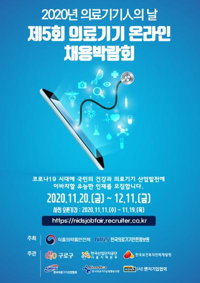 이번 ‘의료기기 온라인 채용박람회’는 식품의약품안전처와 한국의료기기안전정보원이 주최하고, 구로구와 한국산업단지공단, 한국보건복지인력개발원, 한국의료기기산업협회, 한국의료기기공업협동조합, (사)벤처기업협회가 함께 주관한다.