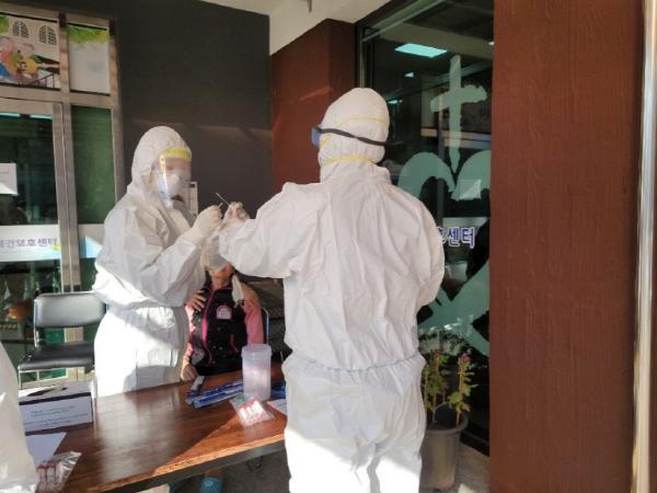 검사대상은 요양시설 5개소, 노인주간보호시설 2개소(시설종사자133명, 시설이용자30명)이며 총163명 검사결과 모두 음성판정을 받았다.