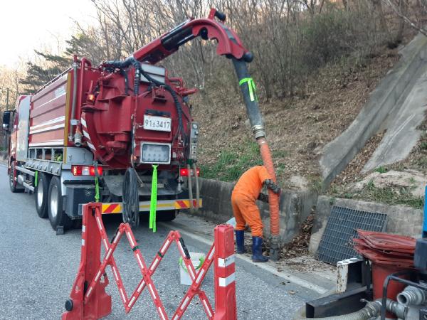 태풍 등으로 도로변에 쓰러지거나 대형버스 통행에 불편을 주고 있는 백일홍 나무 가지 전정과 겨울철 비나 눈이 올 경우 결빙을 방지하기 위해 배수로에 쌓인 퇴적물을 준설차를 이용하여 제거하였다.