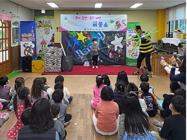 교육은 아동들의 눈높이에 맞춰 풍선 및 비눗방울 퍼포먼스에 접목시켜 이해하기 쉽도록 진행됐다.