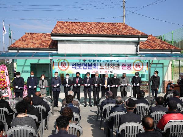 영양군 석보면 어르신들의 숙원사업인 노인회 분회경로당 준공식이 코로나19 방역수칙을 준수한 가운데 2020년 11월 26일 오전 11시 석보면 노인회 분회경로당에서 개최되었다. 이날 준공식에는 오도창 영양군수, 군의원, 주민 등이 참석하였다.