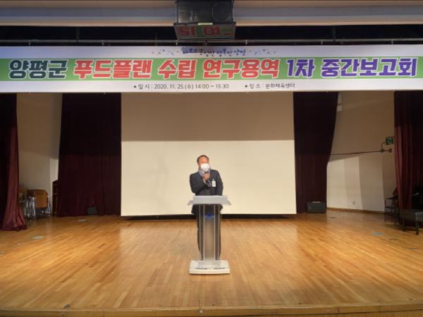 양평군은 군민의 먹거리 기본권 보장과 성공적인 먹거리 종합전략 수립을 위해 생산자단체, 소비자단체, 관계기관 등 60여 명이 참석한 가운데 양평군 푸드플랜 수립 연구용역 중간보고회를 진행하였다고 밝혔다.