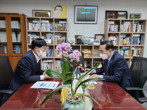 예결특위 의원들과 면담을 마친 변 시장은 곧장 농해수위 최인호(더불어민주당 수석대변인) 의원을 만나 2021년 어촌뉴딜300 공모사업을 비롯한 장목항 국가어항 개발사업, 지세포항 다기능어항 개발사업 등 지역 해양수산사업에 대한 적극적인 지원을 건의했다.