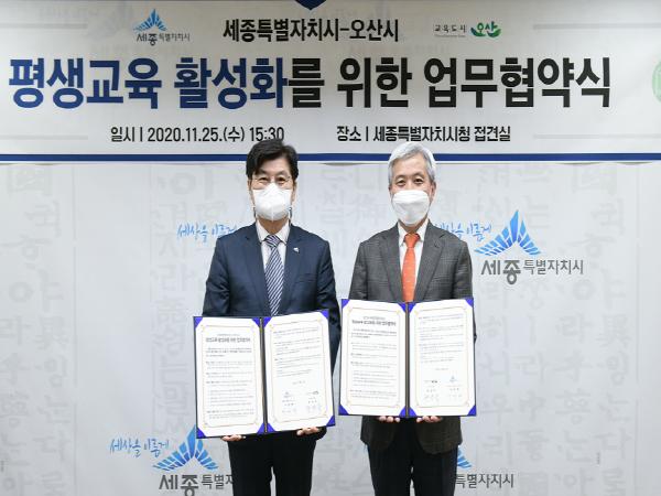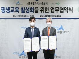 오산시는 지난 11월 25일 세종시청 접견실에서 세종특별자치시(시장 이춘희)와 ‘평생교육 활성화업무협약’을 체결했다고 밝혔다.