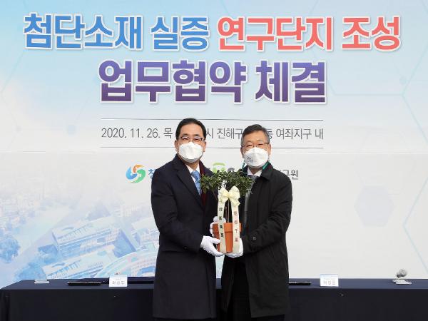 창원시와 한국재료연구원은 ▲ 첨단소재 실증 연구단지 조성을 위한 부지 제공 ▲첨단소재 실증 연구단지 조성 및 운영 ▲ 지역 산?학?연?관이 참여하는 사업기획 및 기술확산을 통한 지역산업 발전 ▲ 지역기업 맞춤형 인재 양성 등을 골자로 하는 양해각서를 체결하고 사업 추진에 본격적인 발걸음을 내딛었다.