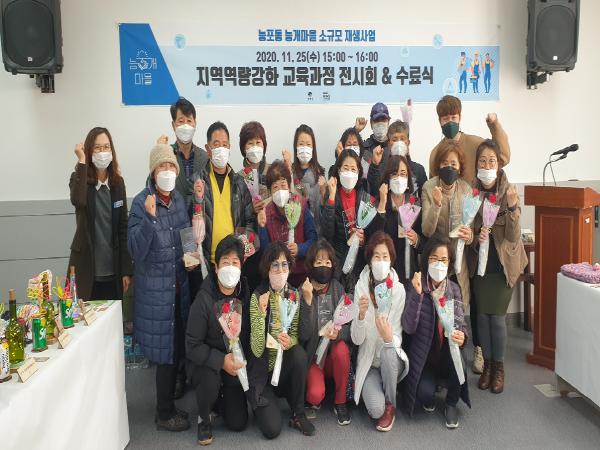 거제시는 지난 11월 25일 능포동 도시재생주민협의체 손복식위원장을 비롯한 수료생 20여명과 관계공무원 등이 참석한 가운데 ‘능개마을 소규모재생사업’으로 추진 중인 지역역량강화 교육 수료식 및 작품전시회를 개최했다.