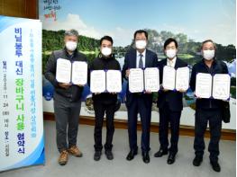 협약을 통해 제천시는 장바구니 사용 등 1회용 비닐봉투 줄이기를 위한 활동 지원 및 현수막 등을 활용한 홍보에 나서고,