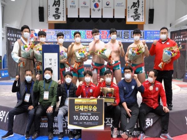 영암군 민속씨름단은 지난 20일부터 24일까지 강원도 평창군 평창송어종합공연체험장에서 열린 민속리그 4차“2020 평창평화장사 씨름대회”에서 한라장사 등극과 단체전 우승을 거머쥐면서 씨름 강군으로서의 명성을 다시 한번 드높였다.