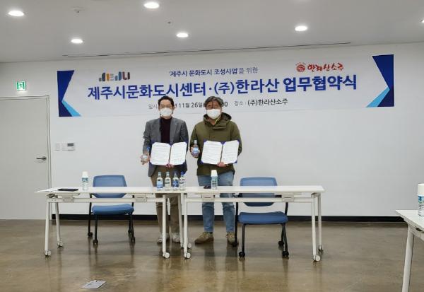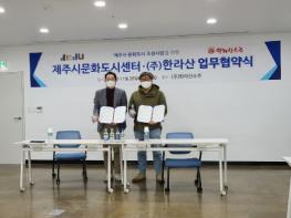제주시는 문화도시 조성사업 일환으로 향토기업인 ㈜한라산(대표이사 현재웅)과 26일 한림읍 소재의 ㈜한라산 대회의실에서 상생업무 협약을 맺고, 지역문화예술 발전을 위해 상호 협력해 나가기로 했다고 밝혔다.